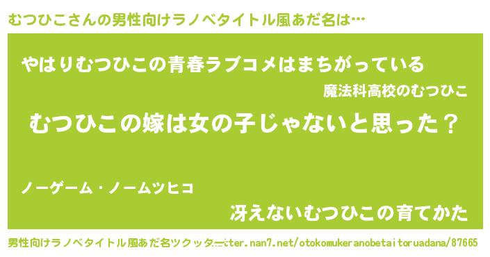 むつひこさんの男性向けラノベタイトル風あだ名をツクッター!