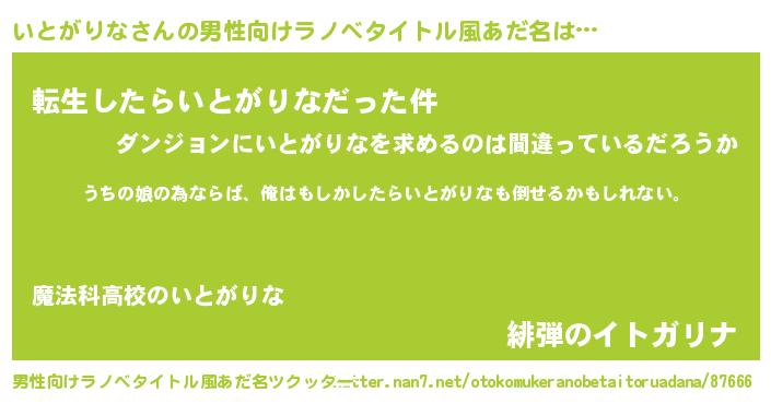 | 女子向けラノベタイトル風あだ名 | 『いとがりなの婚約者』 |