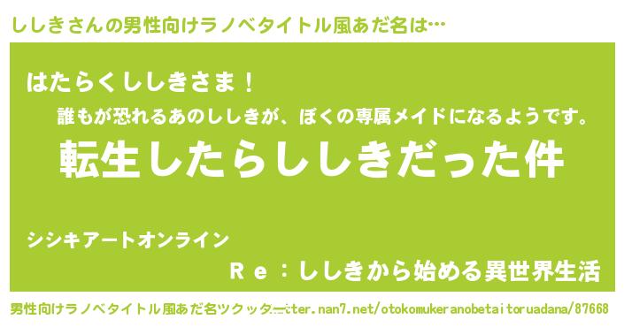 | ヘコむあだ名 | 『ししき(笑)』『ししっふぃ~』 |