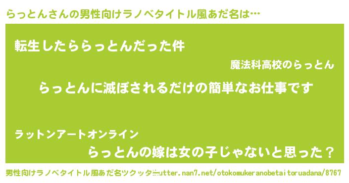 | 意味不明あだ名 | 『ヨモギ科らっとん属』『自称らっとん』 |