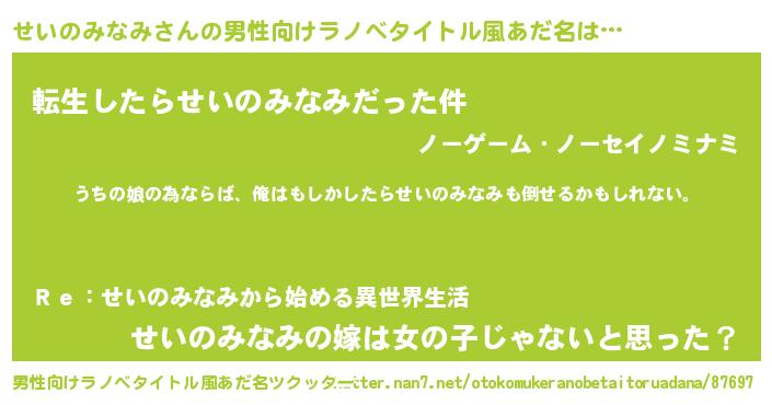 | 女子向けラノベタイトル風あだ名 | 『せいのみなみの婚約者』 |