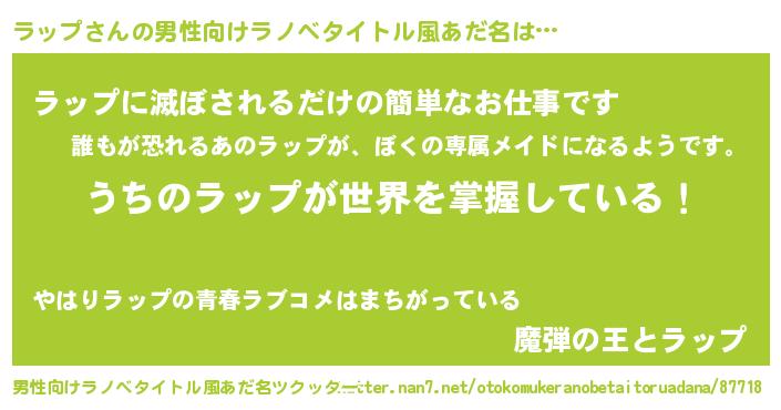 | 胡散臭い通販商品みたいなあだ名 | 『あなたにだけ特別に提供する限定10本のレアな日本酒…その名も「ラップ」』 |