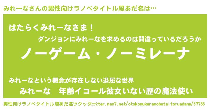| 女子向けラノベタイトル風あだ名 | 『みれーな恋絵巻』 |