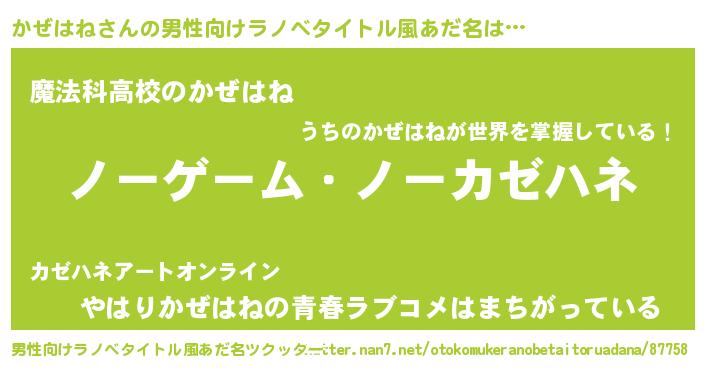 | 欧米人風あだ名 | 『ダニエルかぜはね』『マイケルかぜはね』 |