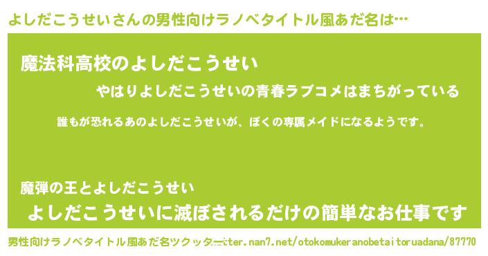 | ヒーロー風カッコイイあだ名 | 『ネオヨシダコウセイ』『仮面ヨシダー』 |