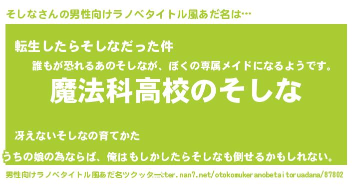 | ヘコむあだ名 | 『豆乳』『そしな(笑)』『そしにゅー』 |