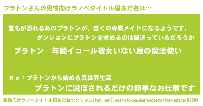| ヘコむあだ名 | 『プラトン(震え声)』『プラぷりん』 |