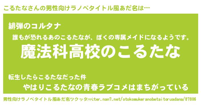 | 意味不明あだ名 | 『自称こるたな』『こるたなフォーエバー』 |