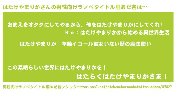 | 意味不明あだ名 | 『ヨモギ科はたけやまりか属』 |