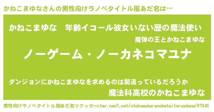| 胡散臭い通販商品みたいなあだ名 | 『お金では代えられない隕石のかけら…その名も「かねこまゆな」』 |