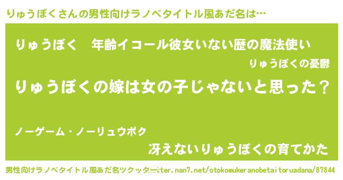 | 胡散臭い通販商品みたいなあだ名 | 『全米が絶賛したサプリメント…その名も「りゅうぼく」』 |