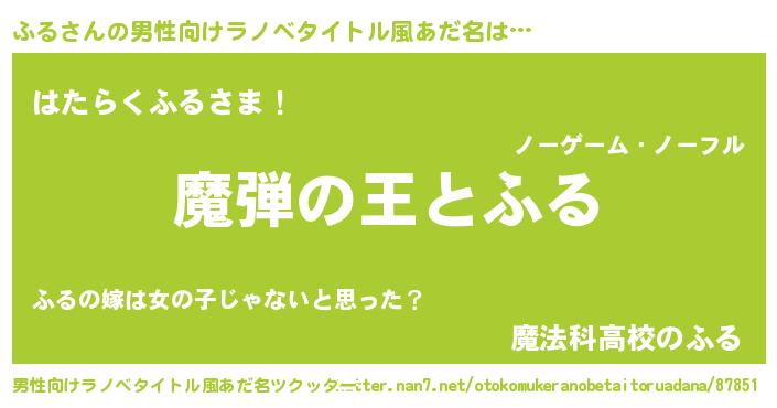 | 女子向けラノベタイトル風あだ名 | 『乙女ゲームの破滅フラグしかない悪役ふるに転生してしまった…』 |