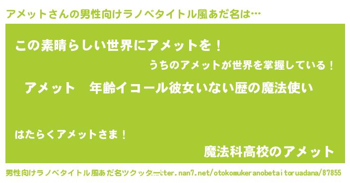 | 意味不明あだ名 | 『ヨモギ科アメット属』『自称アメット』 |