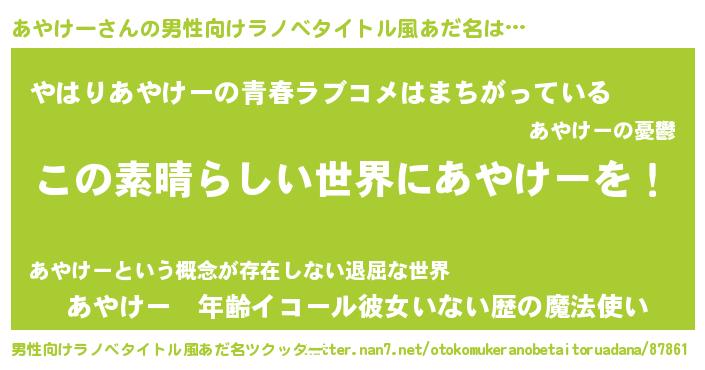 | 意味不明あだ名 | 『住所不定無職あやけー(9歳)』 |