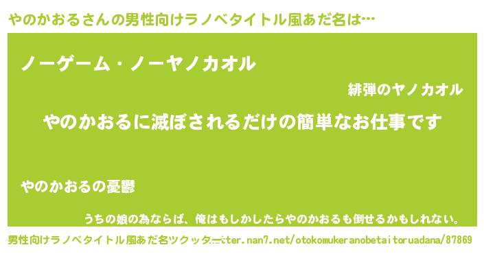 | 女子向けラノベタイトル風あだ名 | 『横柄やのかおると宰相陛下』 |
