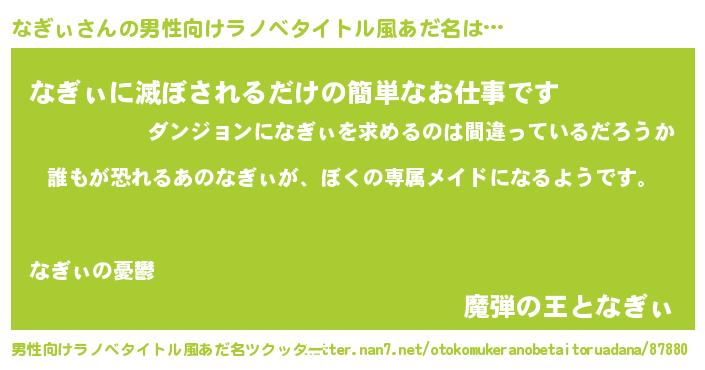 なぎぃさんの男性向けラノベタイトル風あだ名をツクッター!
