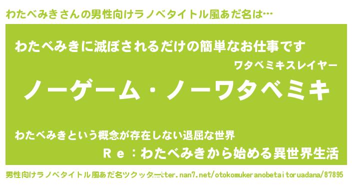 | ヘコむあだ名 | 『わたべみき(震え声)』『わたを』 |