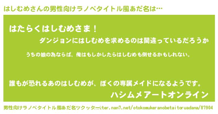 | 女子向けラノベタイトル風あだ名 | 『はしむめの婚約者』 |