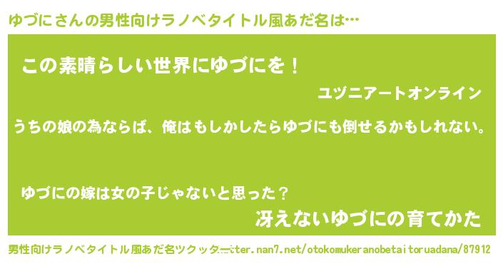 | 胡散臭い通販商品みたいなあだ名 | 『運命の人と巡り会える高級そうな皿…その名も「ゆづに」』 |