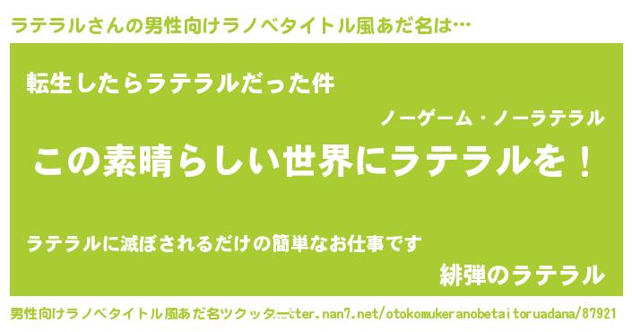 | ヒーロー風カッコイイあだ名 | 『仮面ラテダー』『愛の使者ラテラル』 |