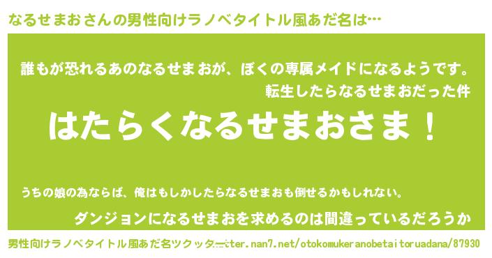 | ヘコむあだ名 | 『なるせまお(苦笑)』『なるお』 |