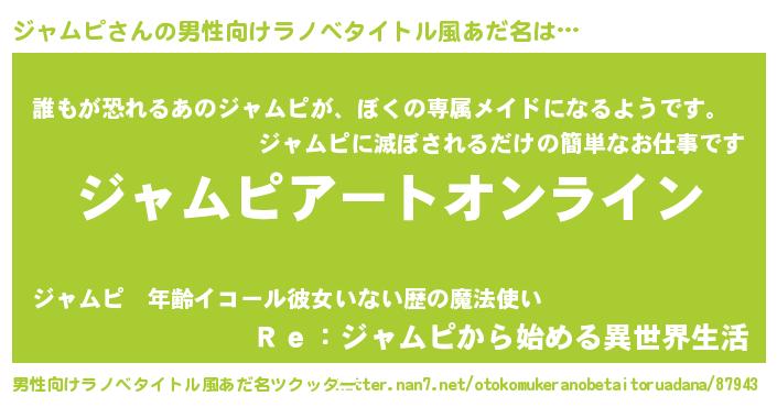 | 胡散臭い通販商品みたいなあだ名 | 『億万長者になれるブレスレット…その名も「ジャムピ」』 |