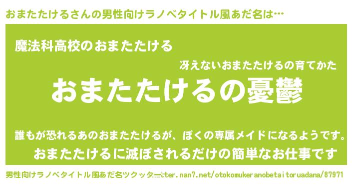 | ヘコむあだ名 | 『おまもー』『おまたたける(爆)』 |