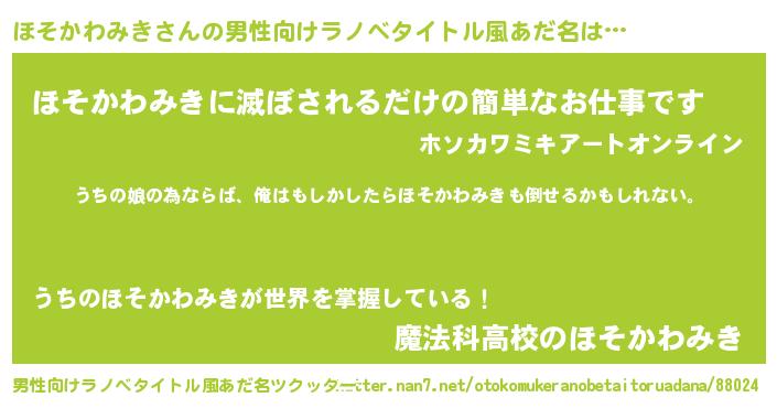 | 女子向けラノベタイトル風あだ名 | 『ほそかわみきの婚約者』 |