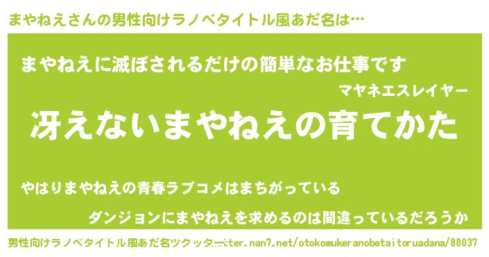 | ヒーロー風カッコイイあだ名 | 『幻影騎士マヤ』『ウルトラまやねえマン』 |