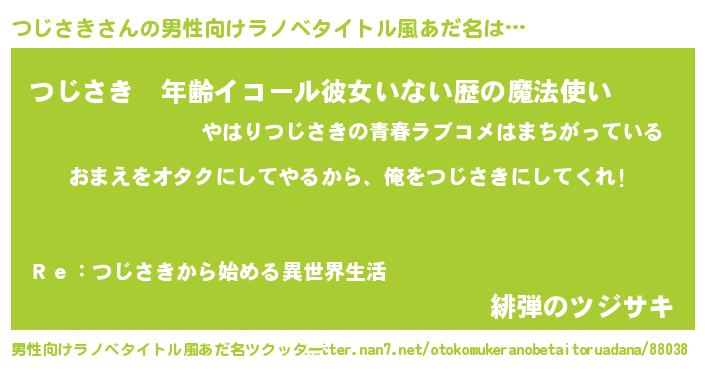 | 女子向けラノベタイトル風あだ名 | 『つじさき夫妻のなれそめ』 |