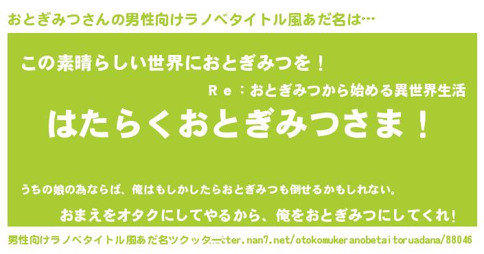 | ヒーロー風カッコイイあだ名 | 『仮面オトダー』『天空の使者おとぎみつ』 |