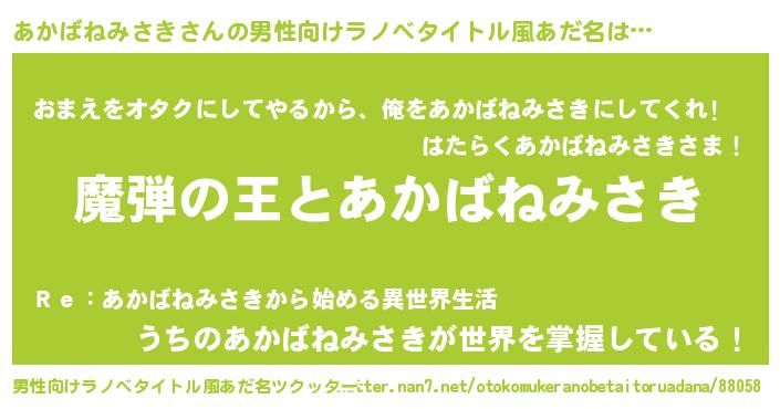 | 意味不明あだ名 | 『住所不定無職あかばねみさき(4歳)』 |