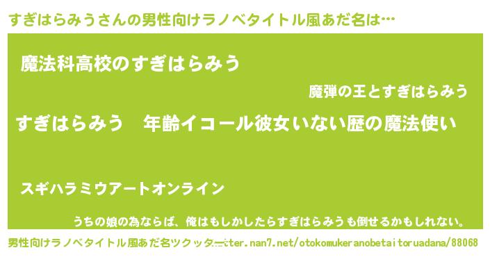 | 肩書あだ名 | 『すぎはらみう中将』『すぎはらみう閣下』 |