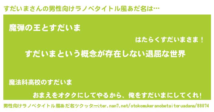 | 胡散臭い通販商品みたいなあだ名 | 『来世でも幸せになれる水素水…その名も「すだいま」』 |