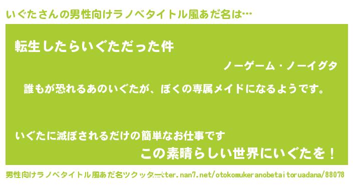 | ヘコむあだ名 | 『いぐた(震え声)』『豆乳』 |