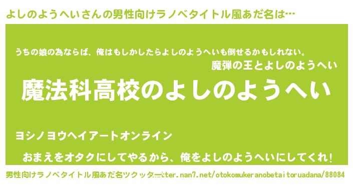 | 意味不明あだ名 | 『自称よしのようへい』 |