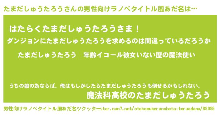 | 女子向けラノベタイトル風あだ名 | 『たまだしゅうたろうの玉の輿計画!』 |