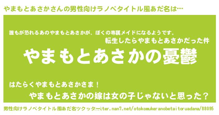 | 女子向けラノベタイトル風あだ名 | 『やまもとあさか姫と円卓の騎士』 |