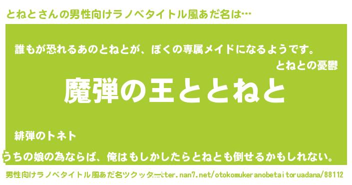 | ヘコむあだ名 | 『とねと(遠い目)』『レバニラ』 |