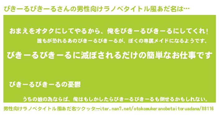 | 伝説のあだ名 | 『救世主となる技術者びきーるびきーる』 |