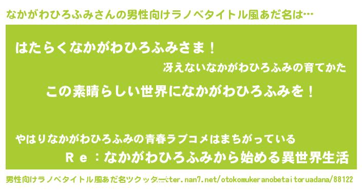 | ヒーロー風カッコイイあだ名 | 『仮面ナカダー』『ネオナカガワヒロフミ』 |
