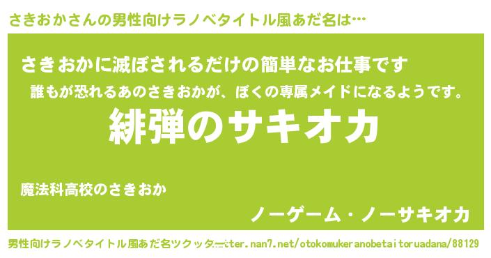 | ヒーロー風カッコイイあだ名 | 『正義の使者さきおか』『ネオサキオカ』 |