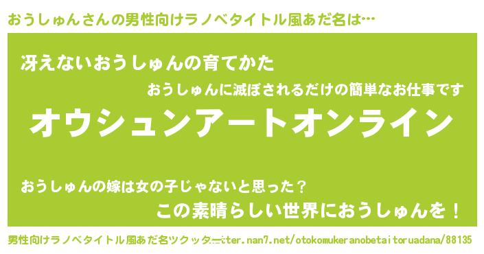 | ヒーロー風カッコイイあだ名 | 『スーパーオウシュン』『仮面オウダー』 |