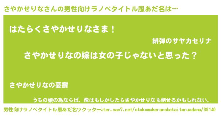 | 女子向けラノベタイトル風あだ名 | 『さやかせりなの卵を拾いまして』 |