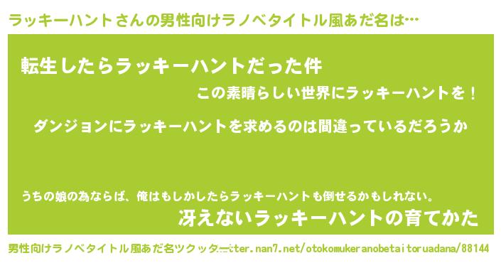 | ポケモン風あだ名 | 『ヒラッキーハント』『ラッキング』 |