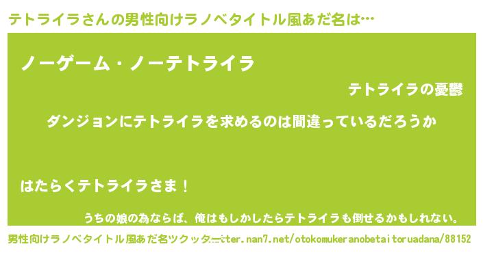 | ヒーロー風カッコイイあだ名 | 『魔戒騎士テト』『天空の使者テトライラ』 |