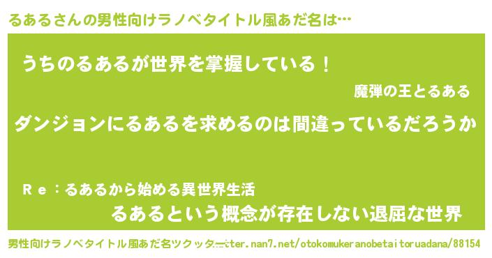 | 女子向けラノベタイトル風あだ名 | 『るあるは平凡を望む』『闇のるある』 |