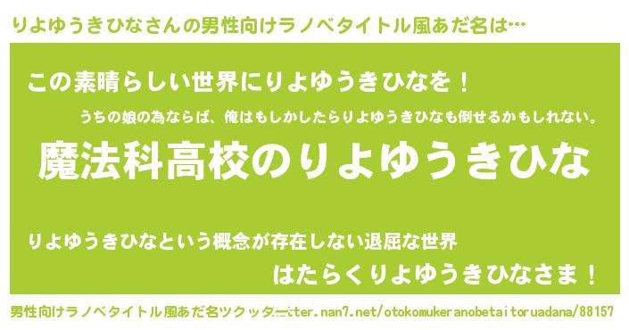 | 女子向けラノベタイトル風あだ名 | 『りよゆうきひななんてお断りですっ。』 |