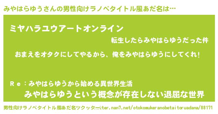 | ヘコむあだ名 | 『みやふぇ~』『みやはらゆう(笑)』 |