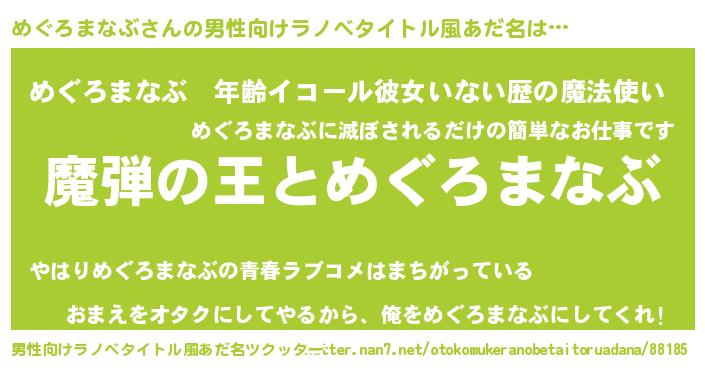 | 胡散臭い通販商品みたいなあだ名 | 『ハリウッド女優が絶賛した100年もののヴィンテージワイン…その名も「めぐろまなぶ」』 |